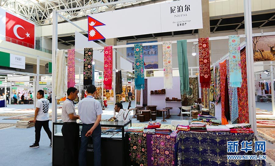 市民在尼泊尔区观展。(图片来源:新华网 张洁龙摄)