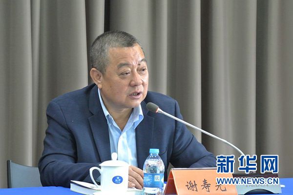 4月12日,由中国社会科学院国际研究学部和社会科学文献出版社共同举办的“《“一带一路”与中国发展战略》发布会”在京举行。社会科学文献出版社社长谢寿光在发布会现场发言。新华网记者 彭纯摄